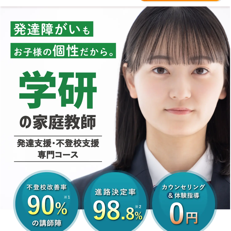 グレーゾーンのお子様にお勧めなのが、発達障害専門コースを持つ「学研の家庭教師」