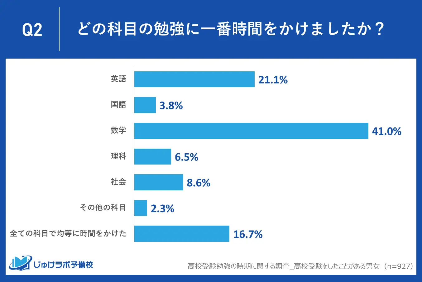 このグラフを見ると、受験生は数学に多く時間を割いていることが分かります。