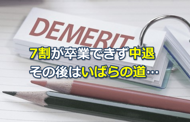 | 卒業率 | 3割以下 | 9割以上 |
