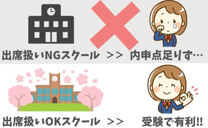 加えて、規模が小さい、新しく実績がないフリースクールも、出席扱いにはなりにくいです。