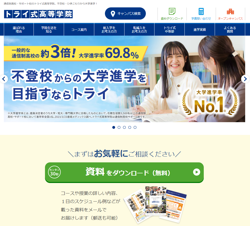 トライは資料請求・オープンキャンパスでも実際の様子を見聞きすることができます。
