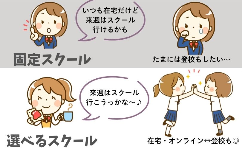 あらかじめ、在宅/オンライン/登校 を、体調に合わせて対応してくれるところにしましょう。