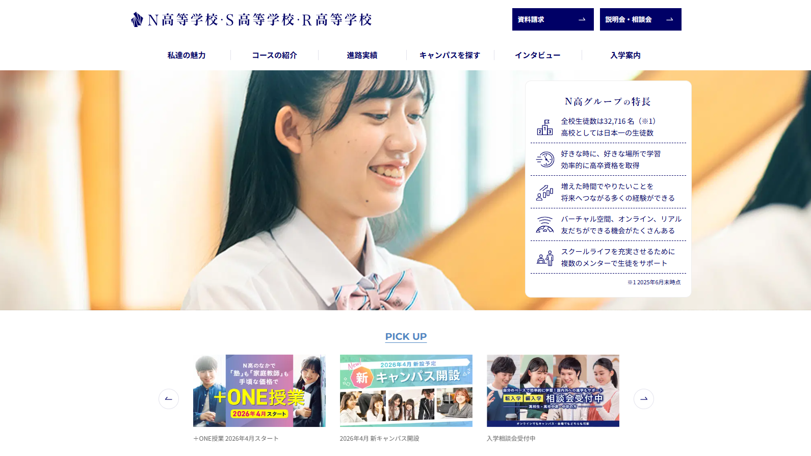 N/S高等学校 webサイトより抜粋