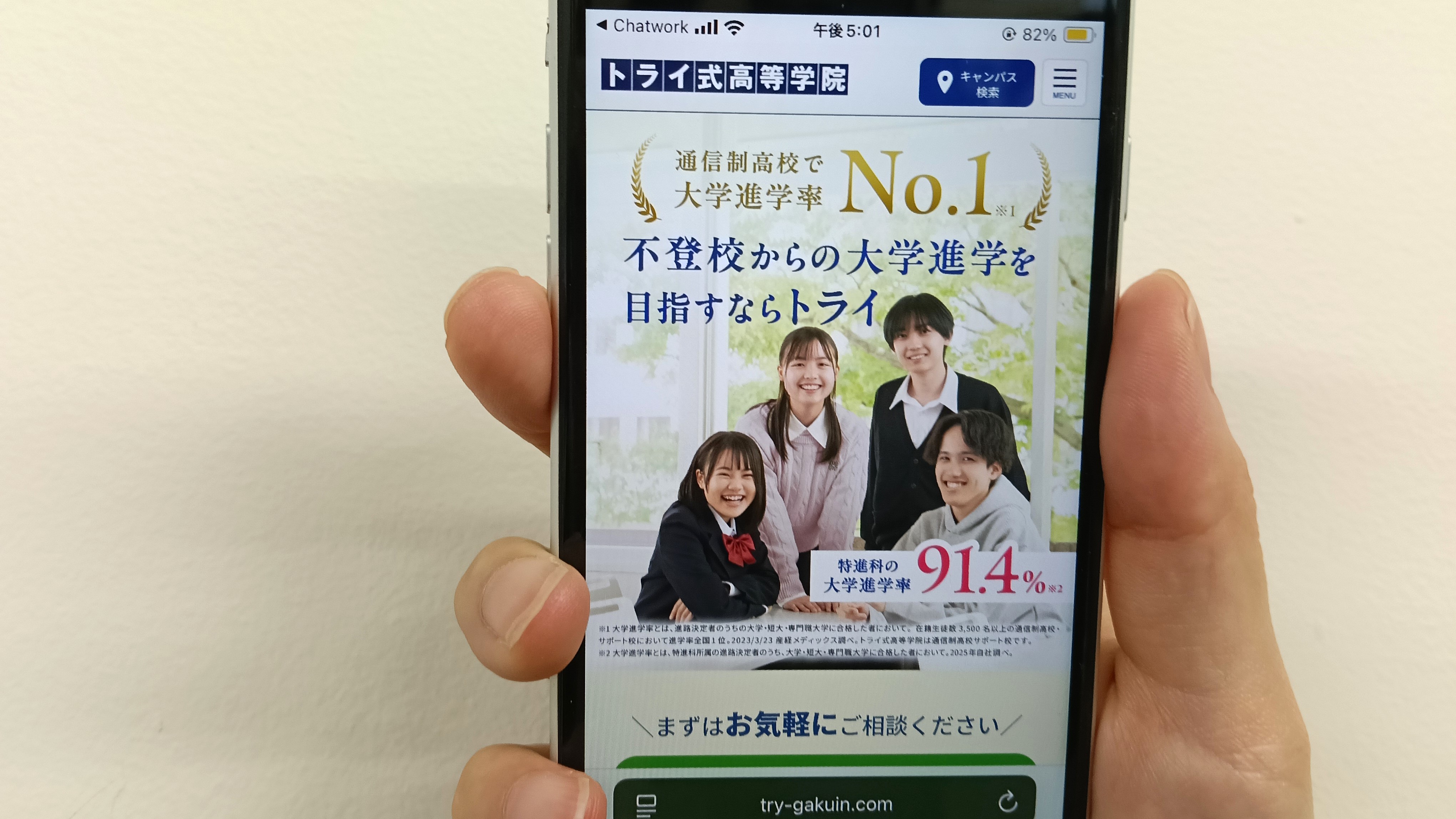トライ式高等学院は卒業率99.9%※1に加え、通信制高校・サポート校の中で大学進学率No.1※2の71.1%※3、特進科はなんと91.1%の実績!!